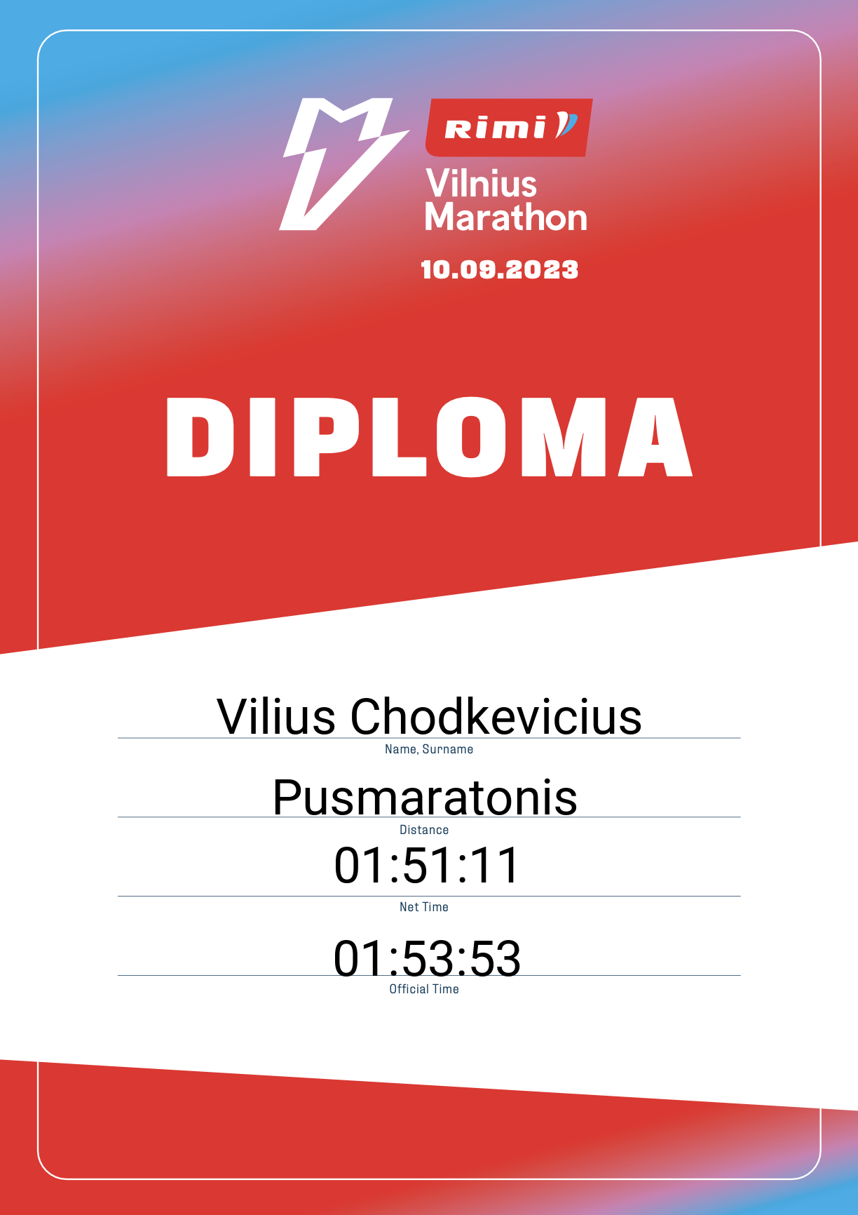 | 677 | Vilius Chodkevicius | 12858 | Lithuania | Pusmaratonis | 01:53:53 | Diplomas | |