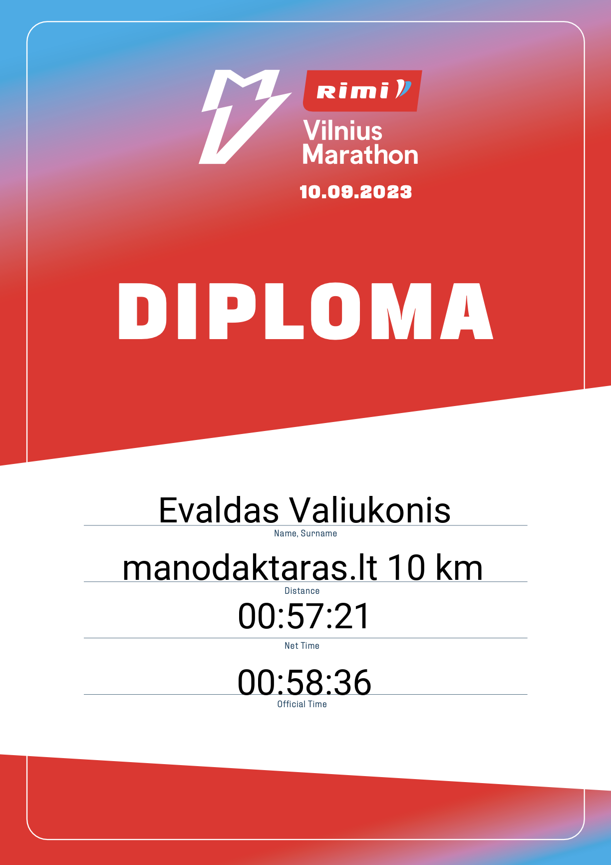 | 881 | Evaldas Valiukonis | 21978 | Lithuania | manodaktaras.lt 10 km | 00:58:36 | Diplomas | |