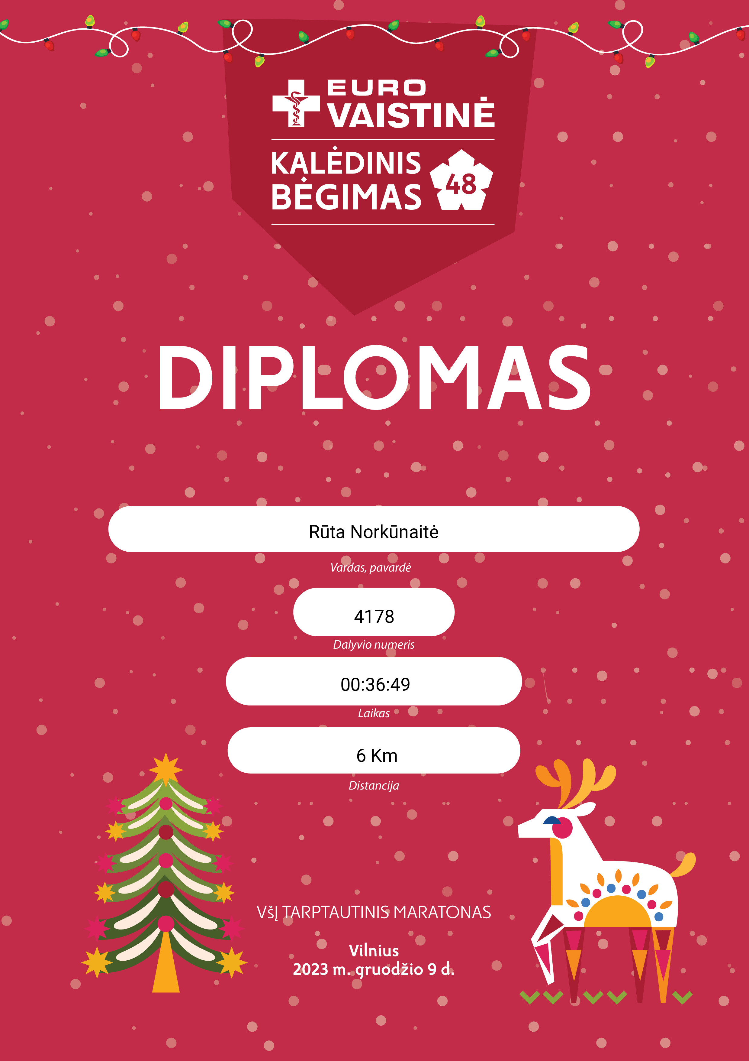 | 376 | Rūta Norkūnaitė | 4178 | Lithuania | 6 Km | 00:36:49 | Diplomas | |