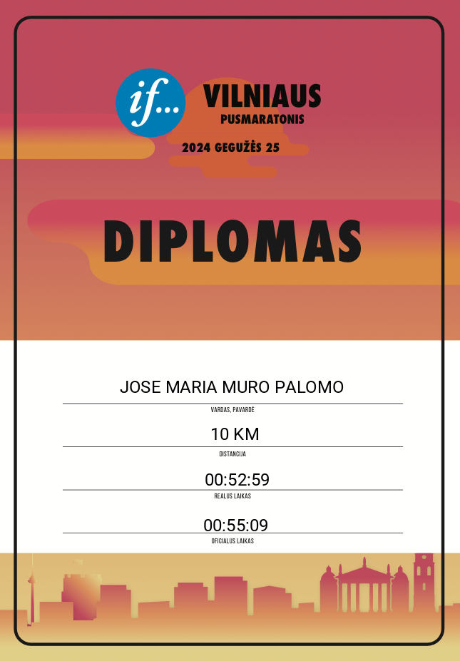 | 315 | JOSE MARIA MURO PALOMO | 20918 | Lithuania | 10 KM | 00:55:09 | Diplomas | |