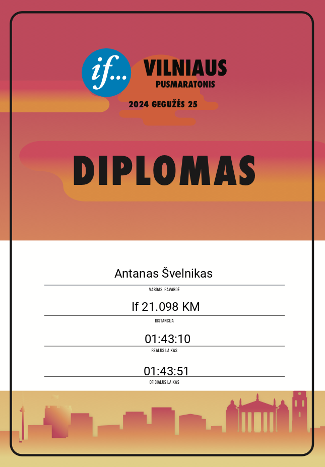 | 547 | Antanas Vasiliauskas | 40001 | Lithuania | 5K RUN | 00:43:16 | Diplomas | |