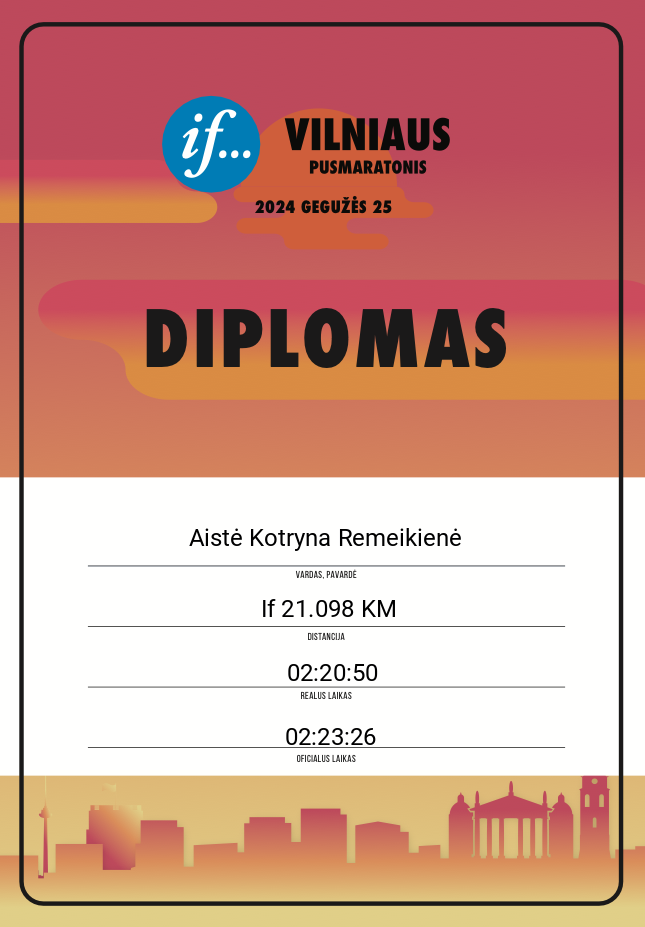 | 1262 | Aistė Leščinskaitė | Zoomies | 10464 | Lithuania | If 21.098 KM | 02:33:48 | Diplomas |