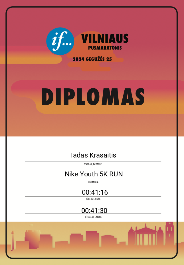487 Tadas Krasaitis MTSGRG 30341 Lithuania Nike Youth 5K RUN 00:41:30 00:41:16 00:22:00 Diplomas