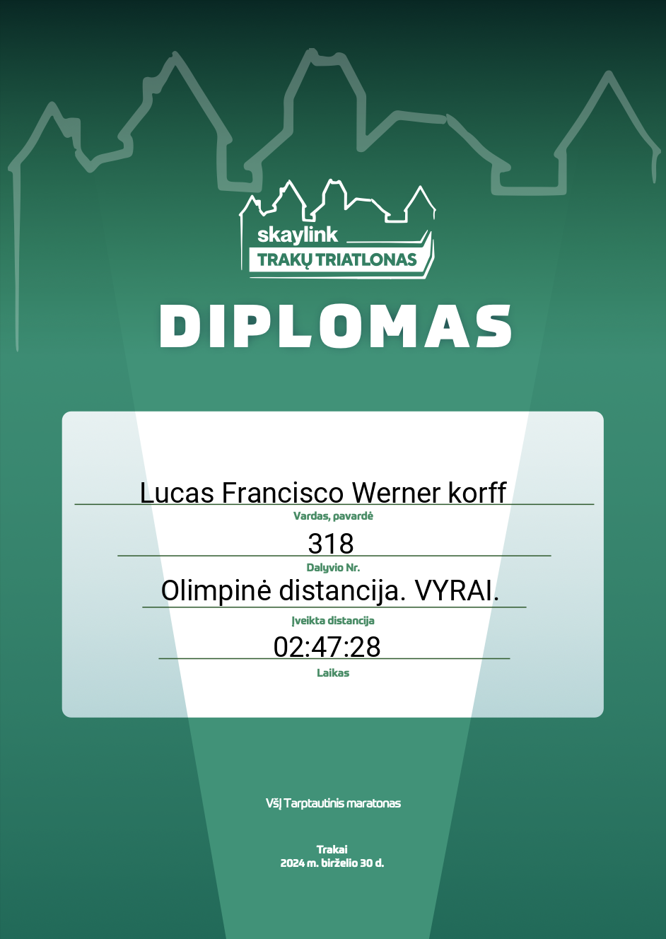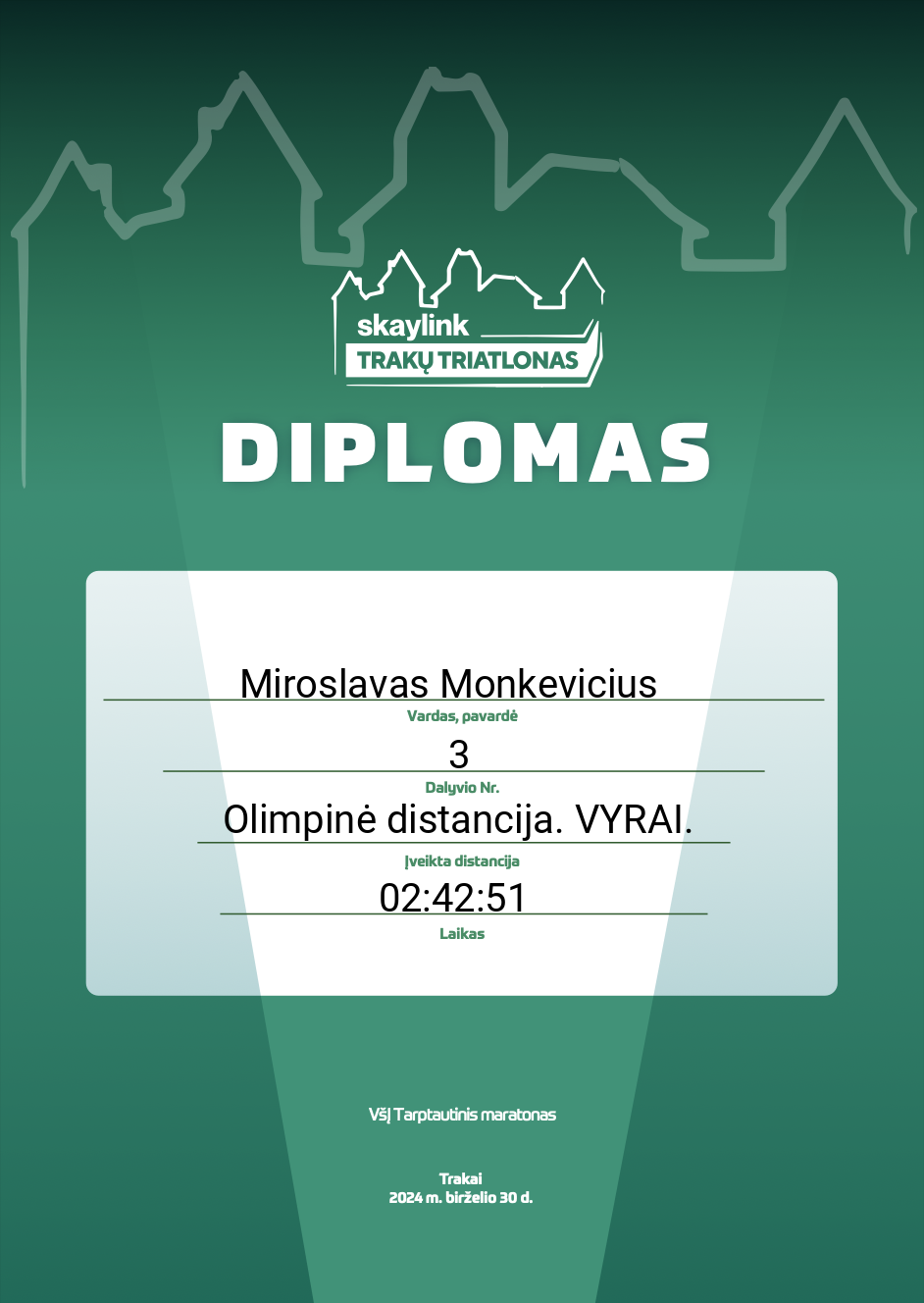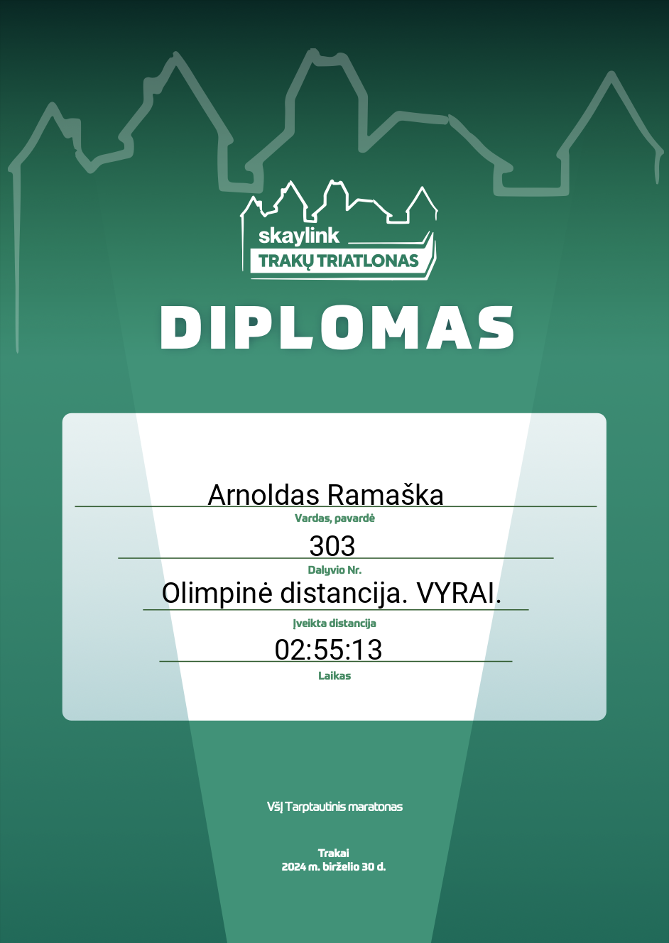 | 235 | Paulius Naujokas | Klaipėdos Triatlono Klubas | 19 | Lithuania | Olimpinė distancija. VYRAI. | 03:17:43 | Diplomas |