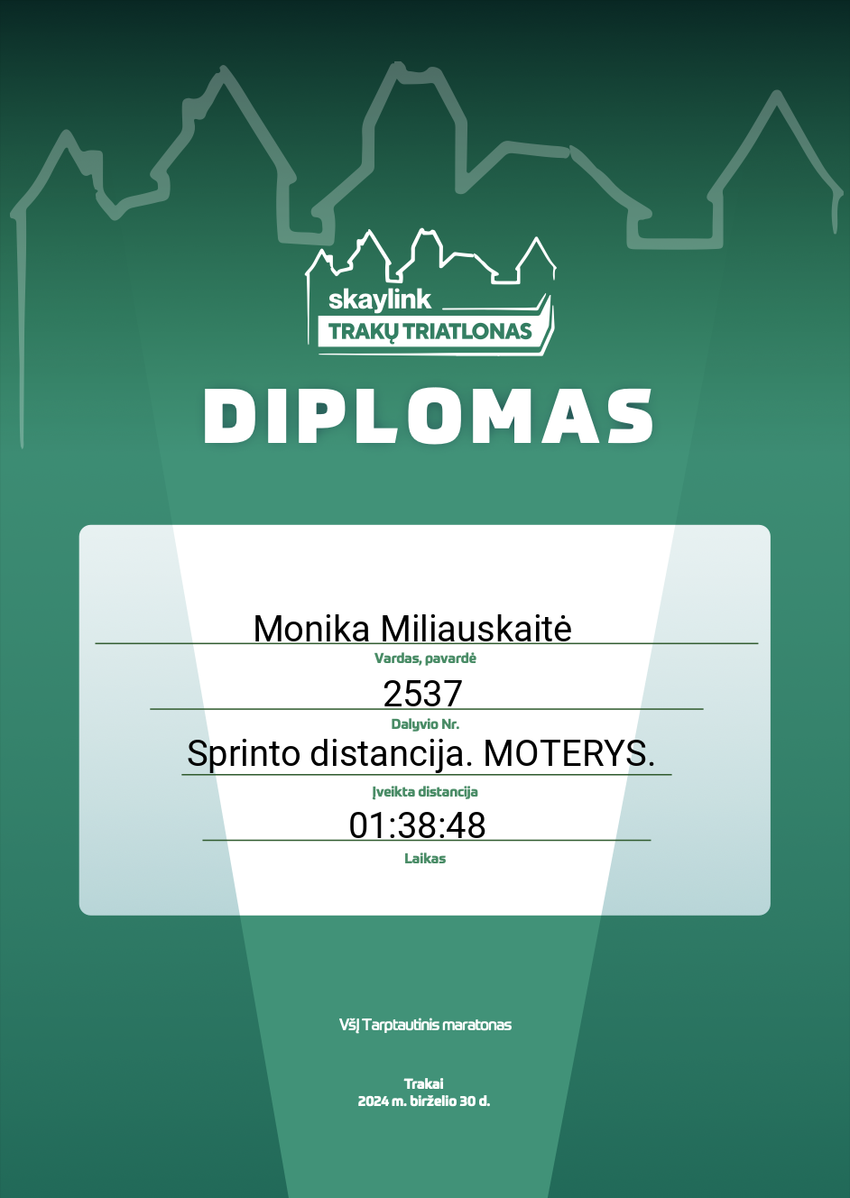 | 22 | Monika Miliauskaitė | 2537 | Lithuania | Sprinto distancija. MOTERYS. | 01:38:48 | Diplomas | |