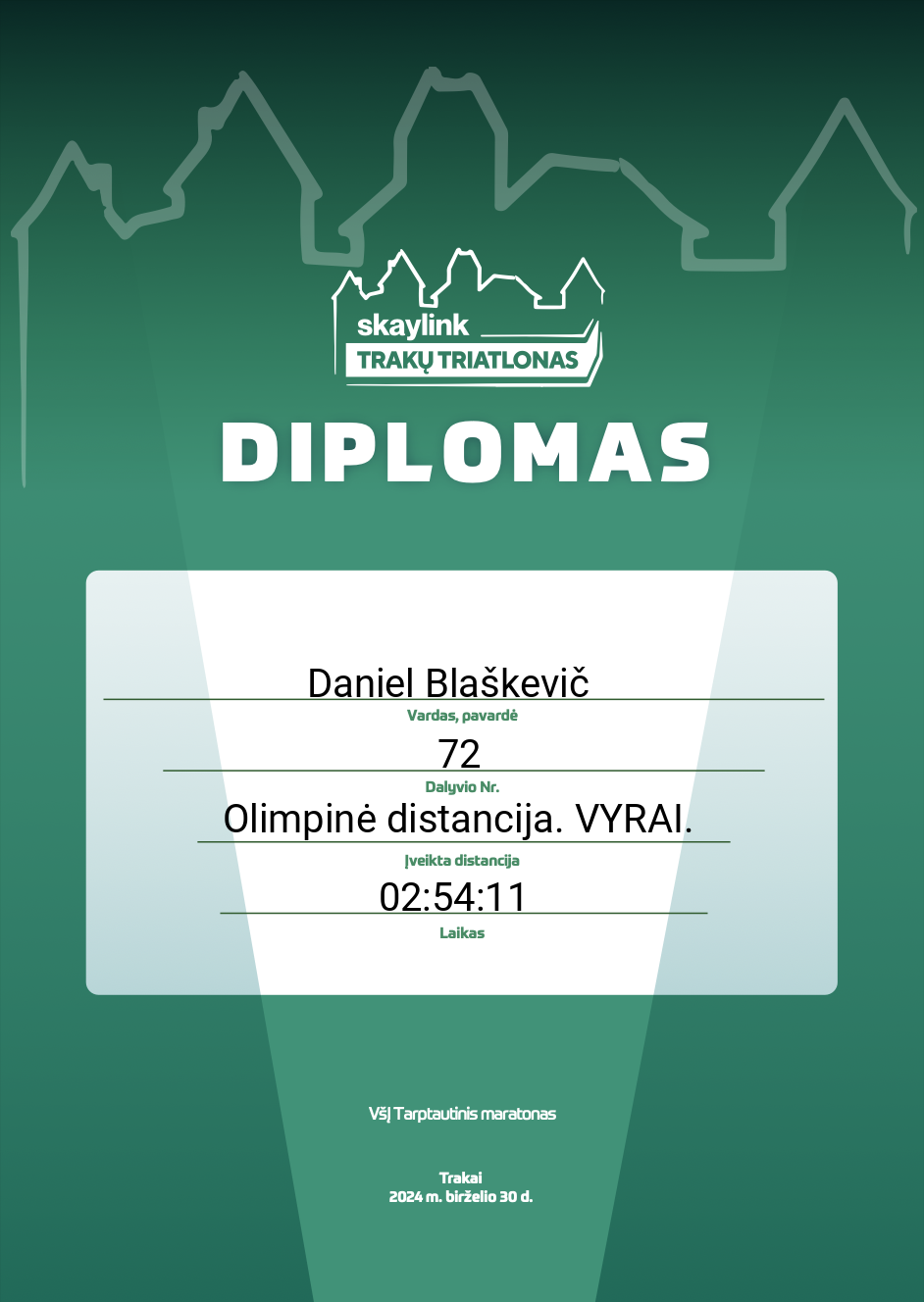 | 236 | Vilius Bastys | ChallengeMe_ | 68 | Lithuania | Olimpinė distancija. VYRAI. | 03:18:12 | Diplomas |