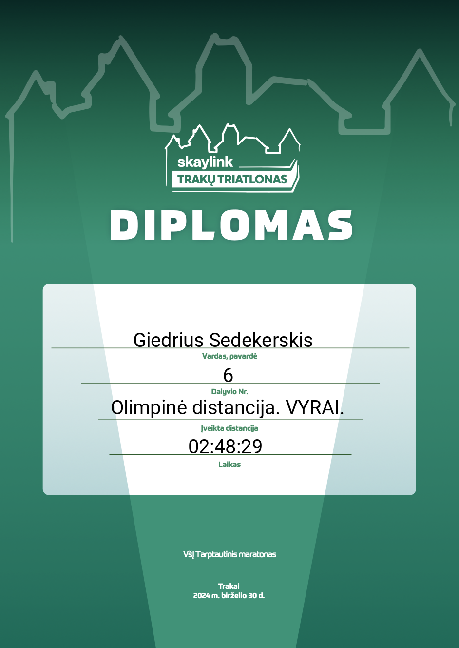 153 Giedrius Sedekerskis 6 Lithuania Olimpinė distancija. VYRAI. 02:48:29 00:35:29 00:03:01 01:17:49 00:12:41 00:12:27 00:12:46 00:02:05 00:50:05 00:12:11 Diplomas