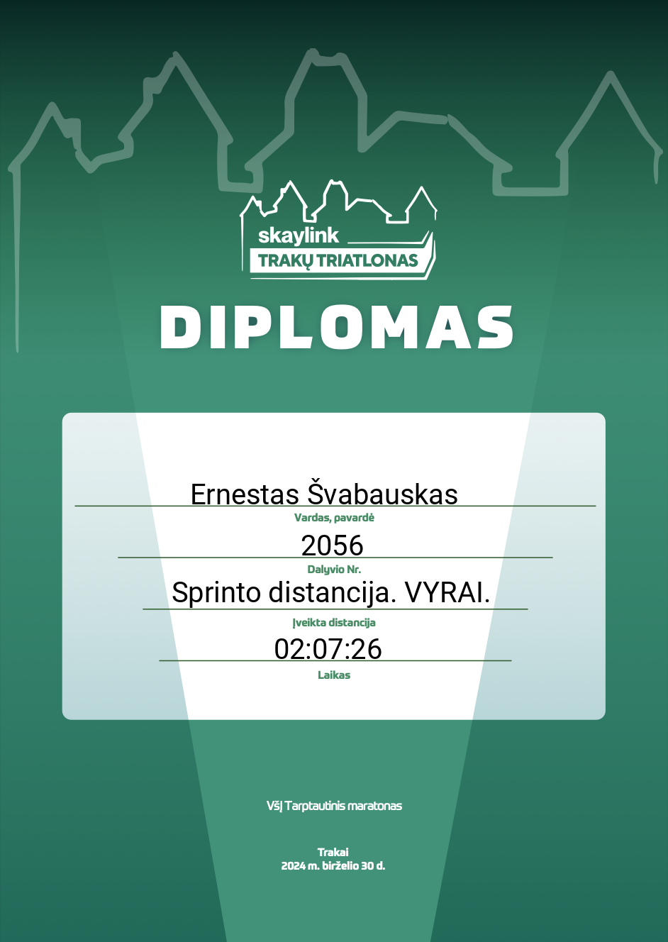 | 41 | Tautvydas Švedas | 2058 | Lithuania | Sprinto distancija. VYRAI. | 01:23:03 | Diplomas | |