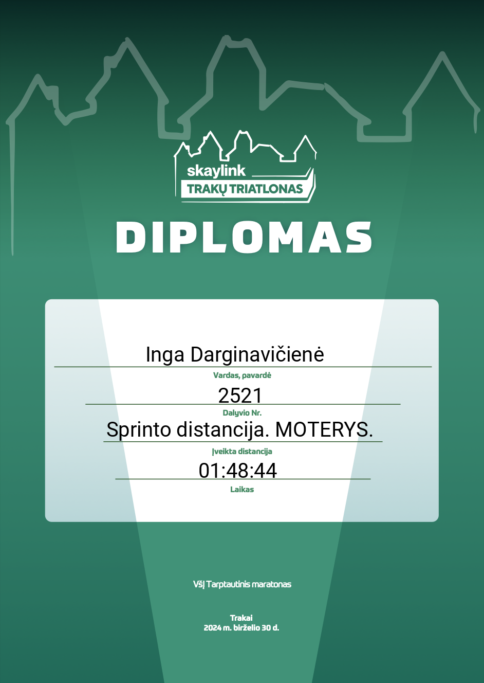 | 35 | Inga Darginavičienė | 2521 | Lithuania | Sprinto distancija. MOTERYS. | 01:48:44 | Diplomas | |