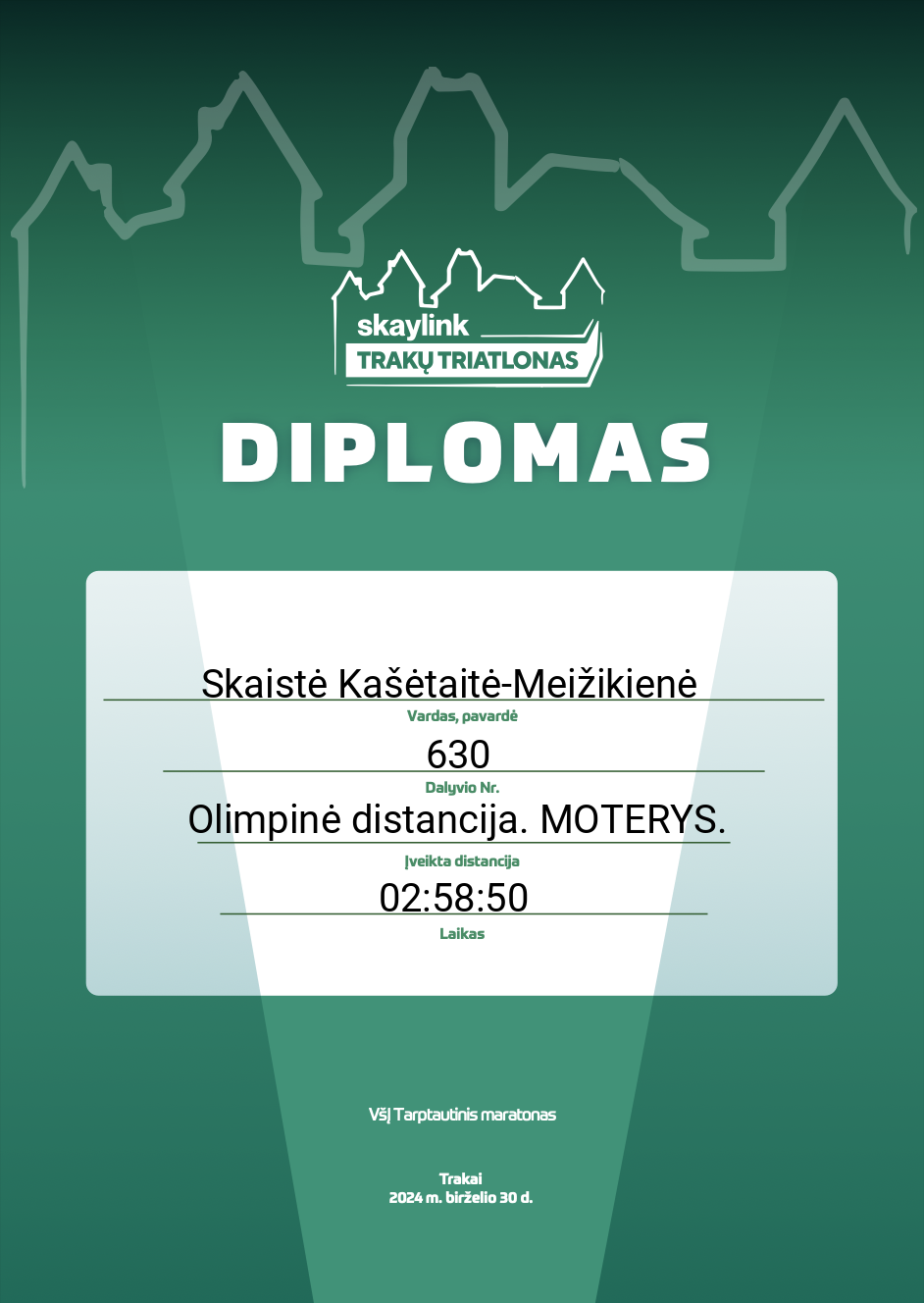 20 Skaistė Kašėtaitė-Meižikienė 630 Lithuania Olimpinė distancija. MOTERYS. 02:58:50 00:41:26 00:07:46 01:21:52 00:11:39 00:11:37 00:11:23 00:02:19 00:45:27 00:10:47 Diplomas