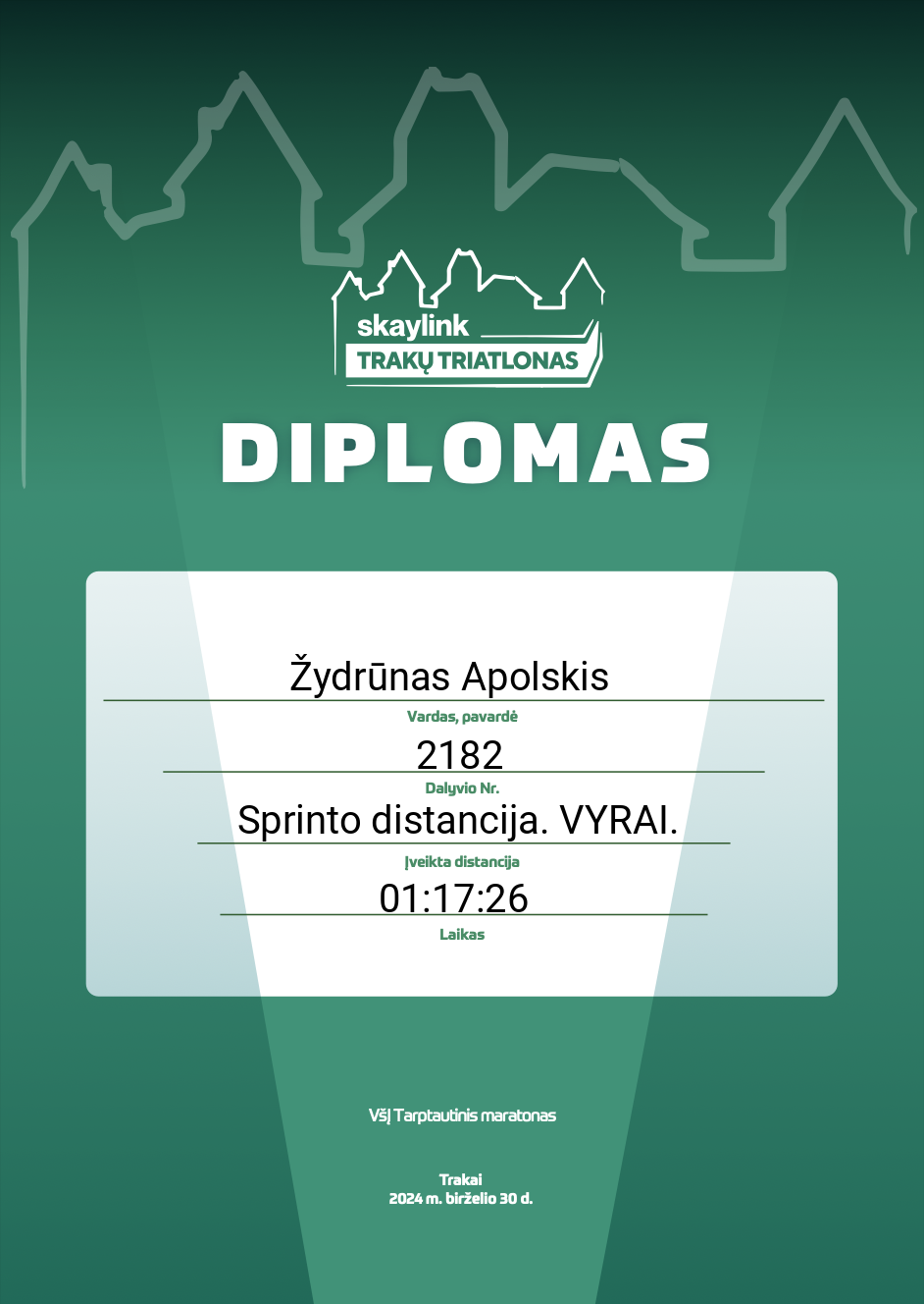 21 Žilvinas Karalius S-Sportas 2100 Lithuania Sprinto distancija. VYRAI. 01:17:36 00:17:06 00:02:41 00:35:58 00:10:26 00:10:06 00:01:19 00:20:31 Diplomas