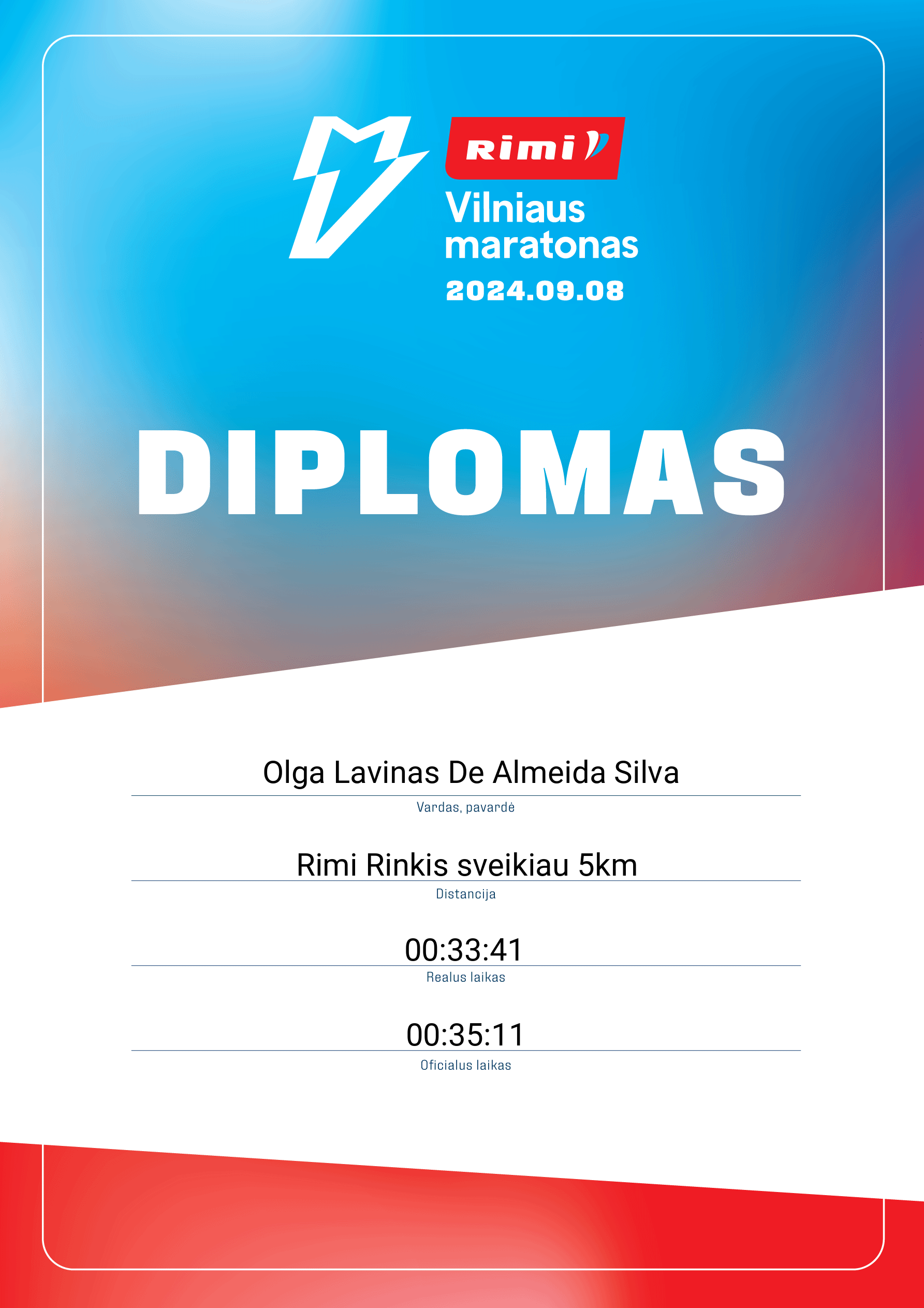 | 1460 | Olga Lavinas De Almeida Silva | SEB | 32279 | Lithuania | Rimi Rinkis sveikiau 5km | 00:35:11 | Diplomas |