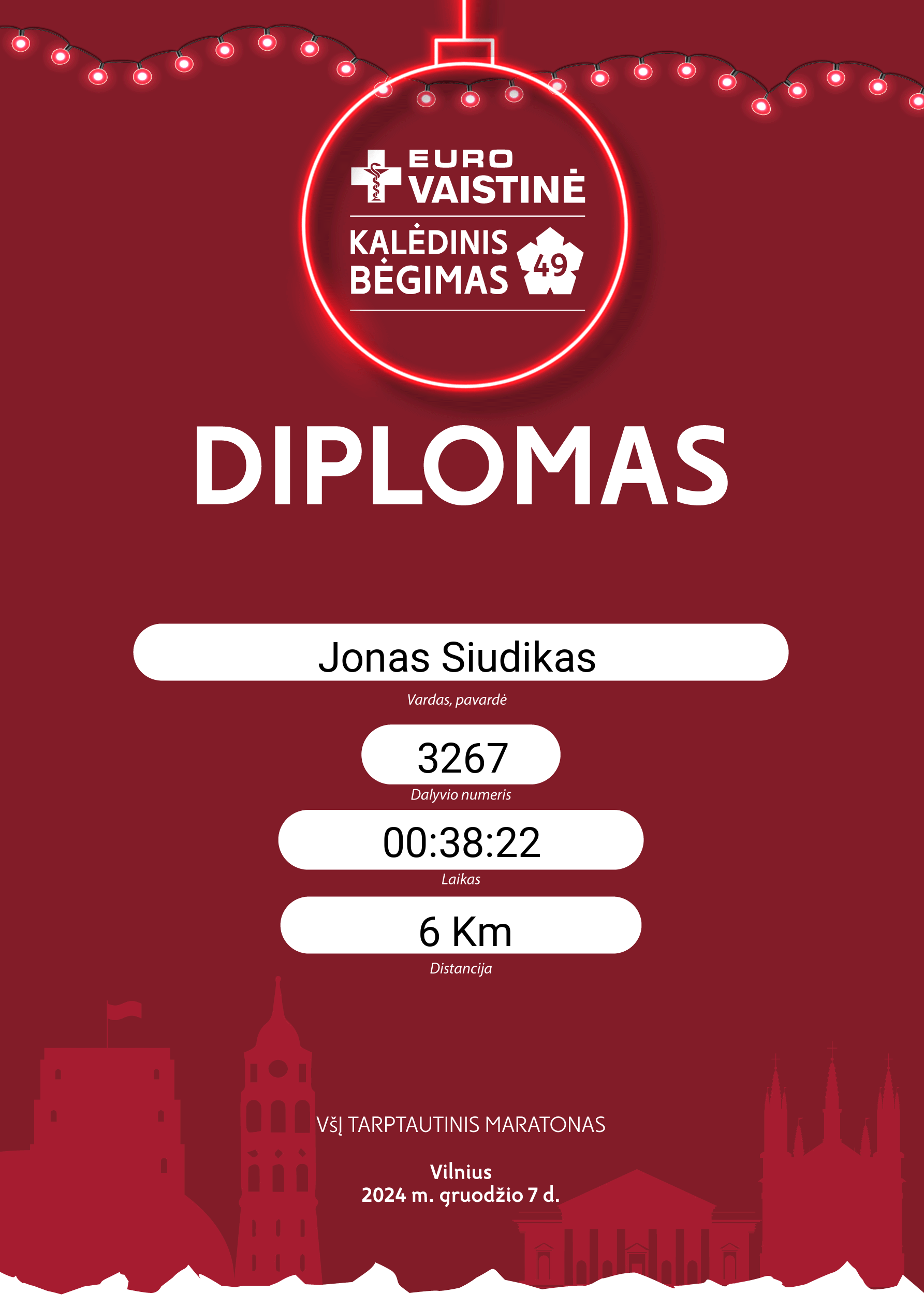| 501 | Jonas Siudikas | Mesk kelią dėl takelio | 3267 | Lithuania | 6 Km | 00:38:22 | Diplomas |