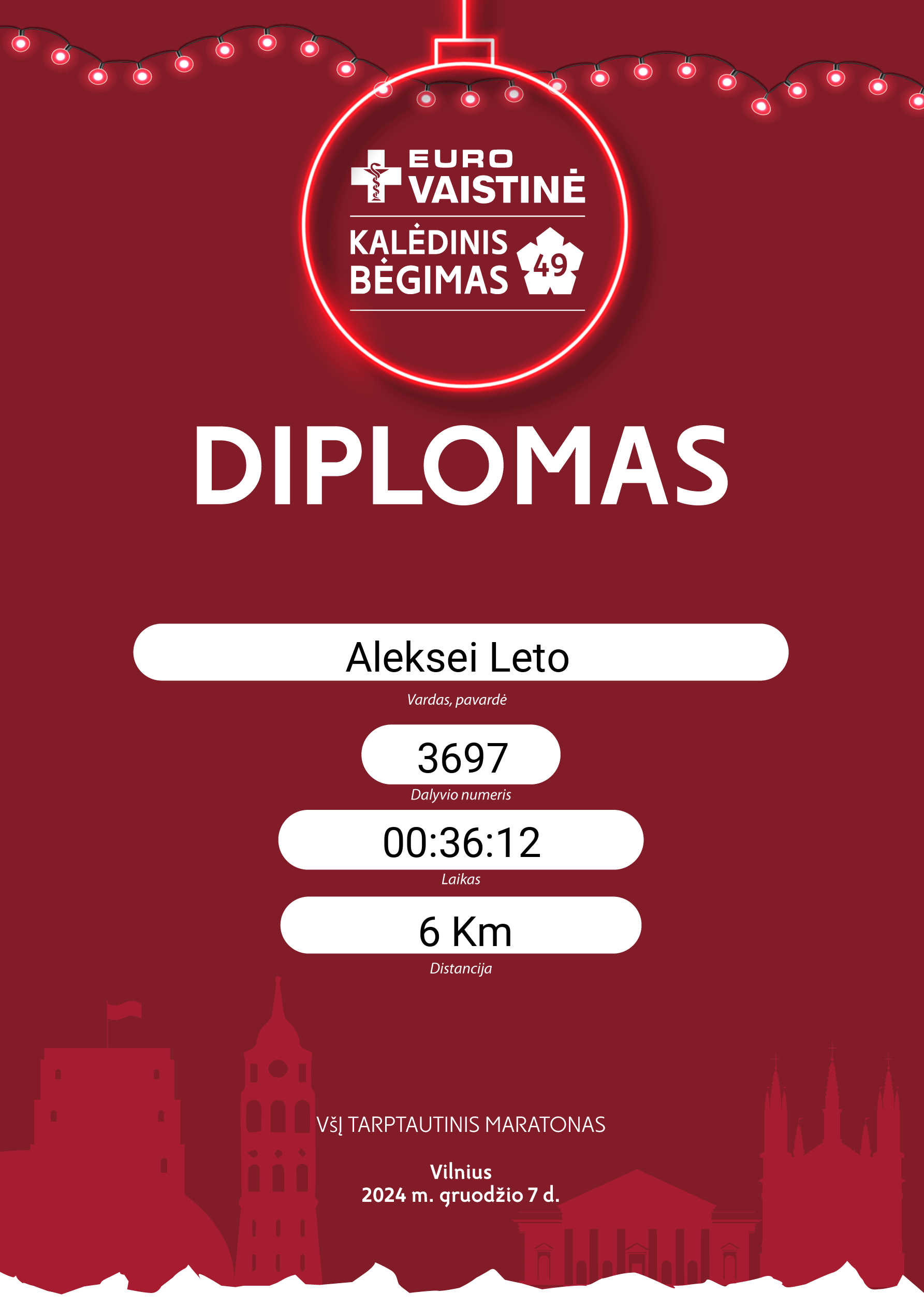 | 369 | Aleksei Leto | 3697 | Lithuania | 6 Km | 00:36:12 | Diplomas | |