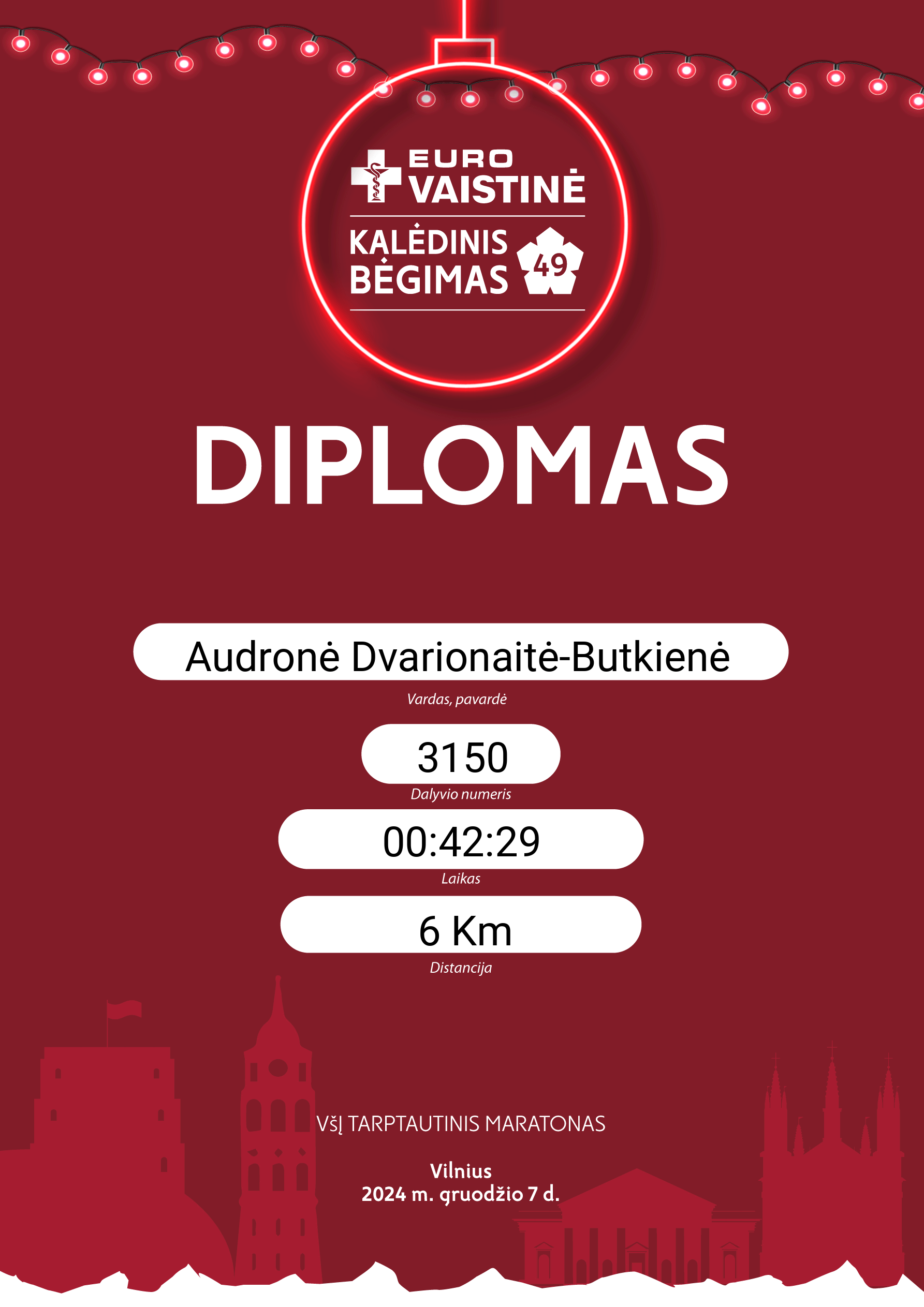 | 732 | Audronė Dvarionaitė-Butkienė | 3150 | Lithuania | 6 Km | 00:42:29 | Diplomas | |