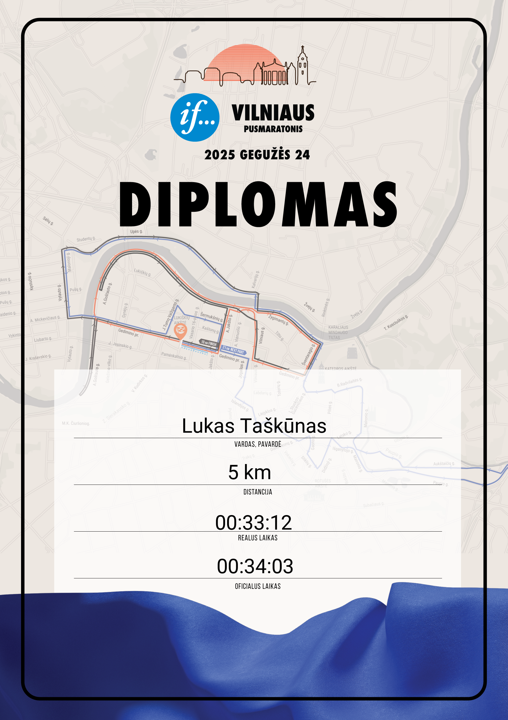 | 449 | Lukas Taškūnas | 40221 | Lithuania | 5 km | 00:34:03 | Diplomas | |