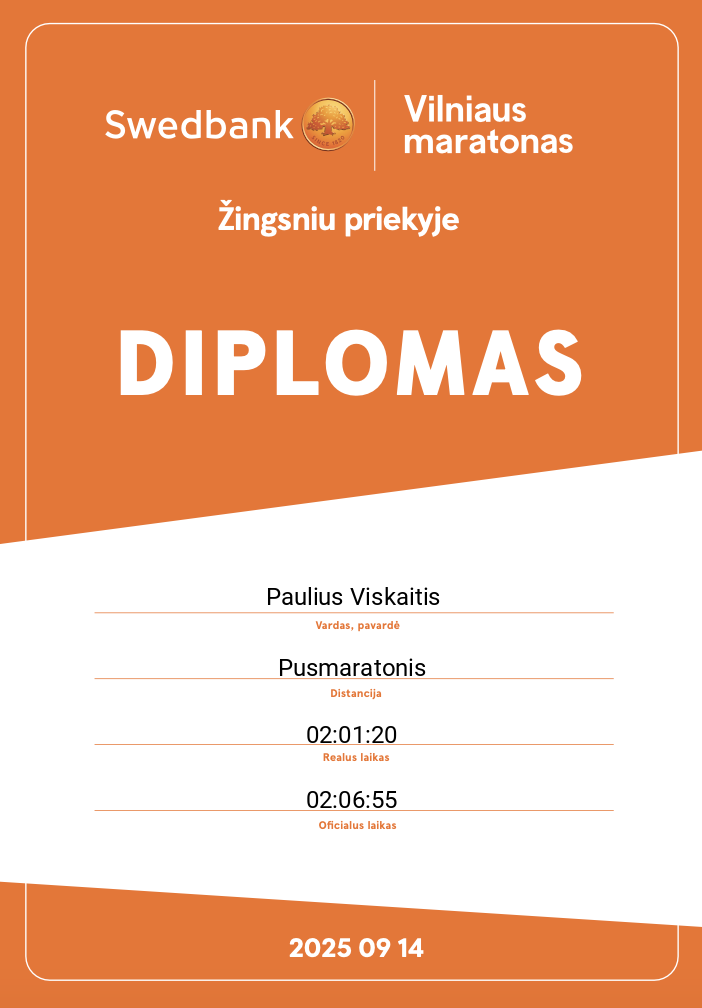 | 1667 | Paulius Viskaitis | 12351 | Switzerland | Pusmaratonis | 02:06:55 | Diplomas | |
