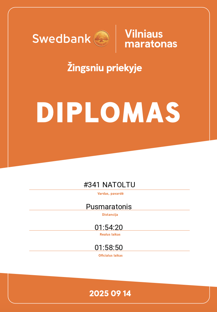 | 1201 | #341 NATOLTU | NATO | 12786 | Lithuania | Pusmaratonis | 01:58:50 | Diplomas |