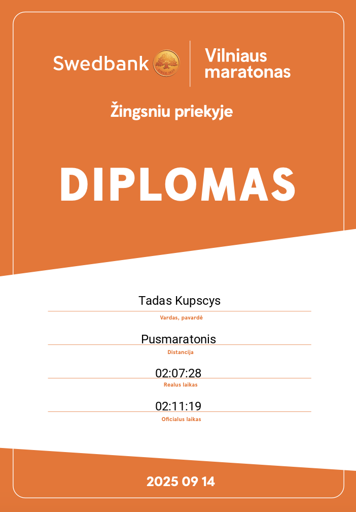 | 364 | Laurynas Kusas | 11480 | Lithuania | Pusmaratonis | 01:41:12 | Diplomas | |