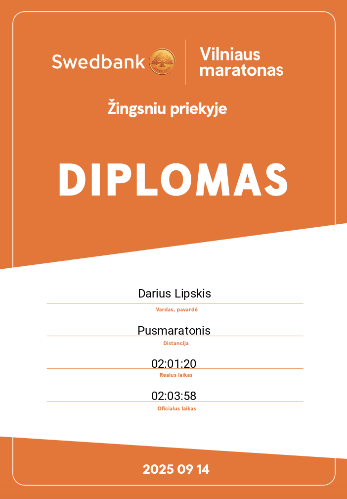 | 1509 | Darius Lipskis | 11461 | Lithuania | Pusmaratonis | 02:03:58 | Diplomas | |