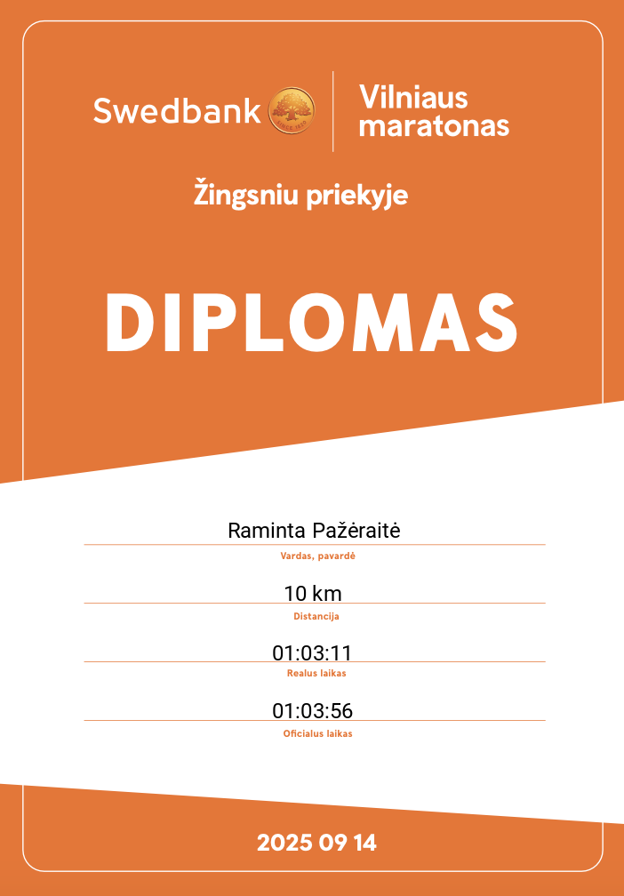 | 2079 | Viltė Černiauskaitė | 31083 | Lithuania | 5 km | 00:38:38 | Diplomas | |