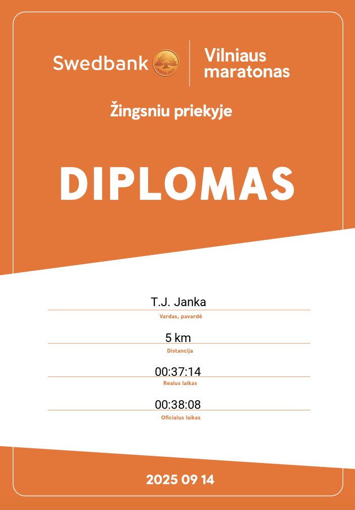 | 1136 | Nojus Vaitkus | 480 | Lithuania | „Swedbank“ Maratonas | 04:33:31 | Diplomas | |