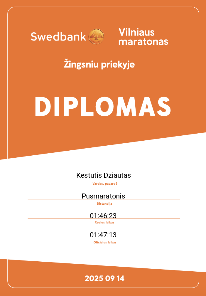 | 567 | Kestutis Dziautas | 10948 | Lithuania | Pusmaratonis | 01:47:13 | Diplomas | |