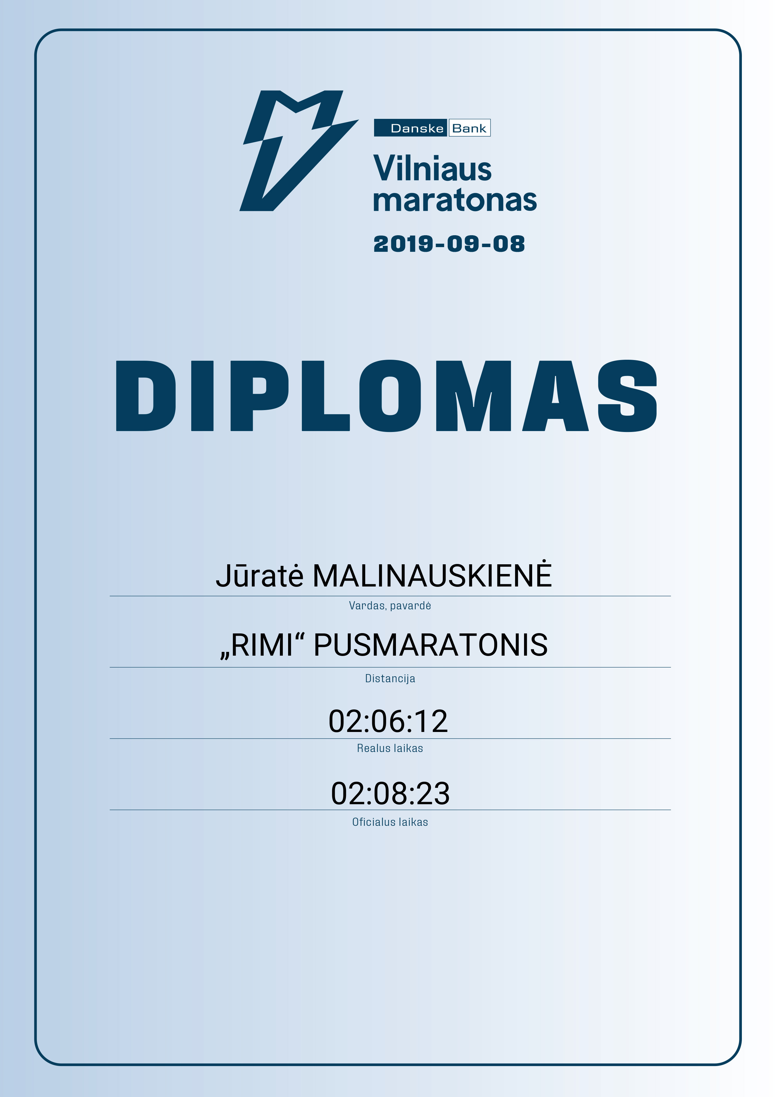 | 1317 | Jūratė MALINAUSKIENĖ | Eurovaistinė | 12158 | Lithuania | „RIMI“ PUSMARATONIS | 02:08:23 | Diplomas |