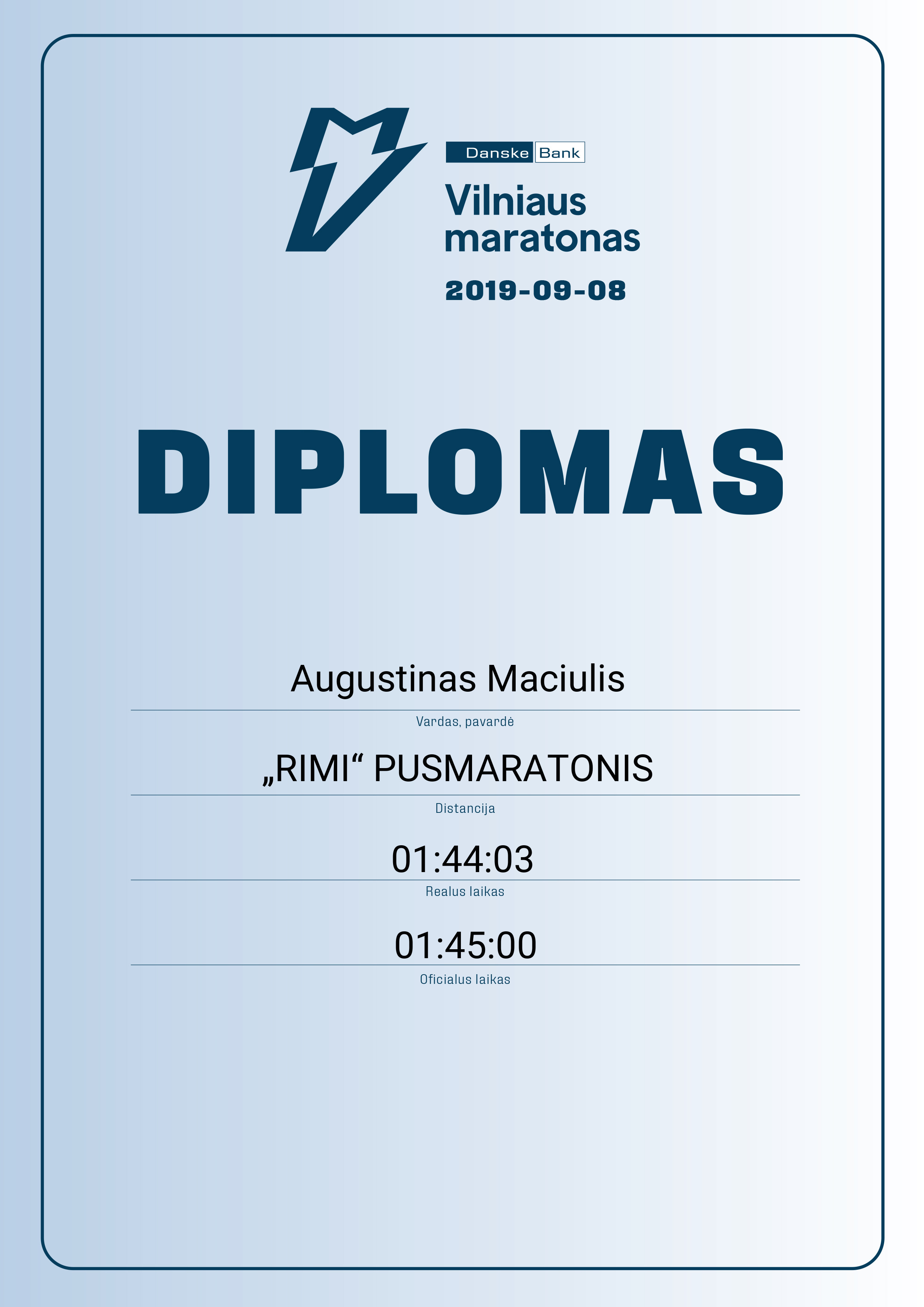 | 461 | Augustinas Maciulis | 10326 | Lithuania | „RIMI“ PUSMARATONIS | 01:45:00 | Diplomas | |