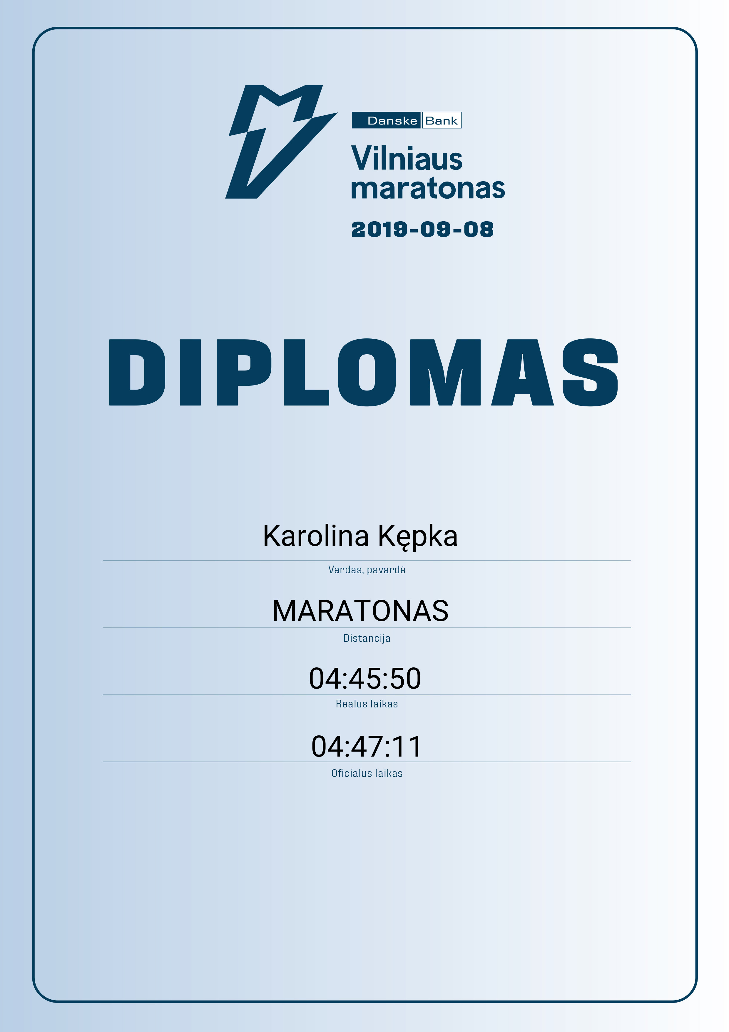 | 567 | Paulius Jankauskas | AUMIPA | 563 | Lithuania | MARATONAS | 04:24:31 | Diplomas |