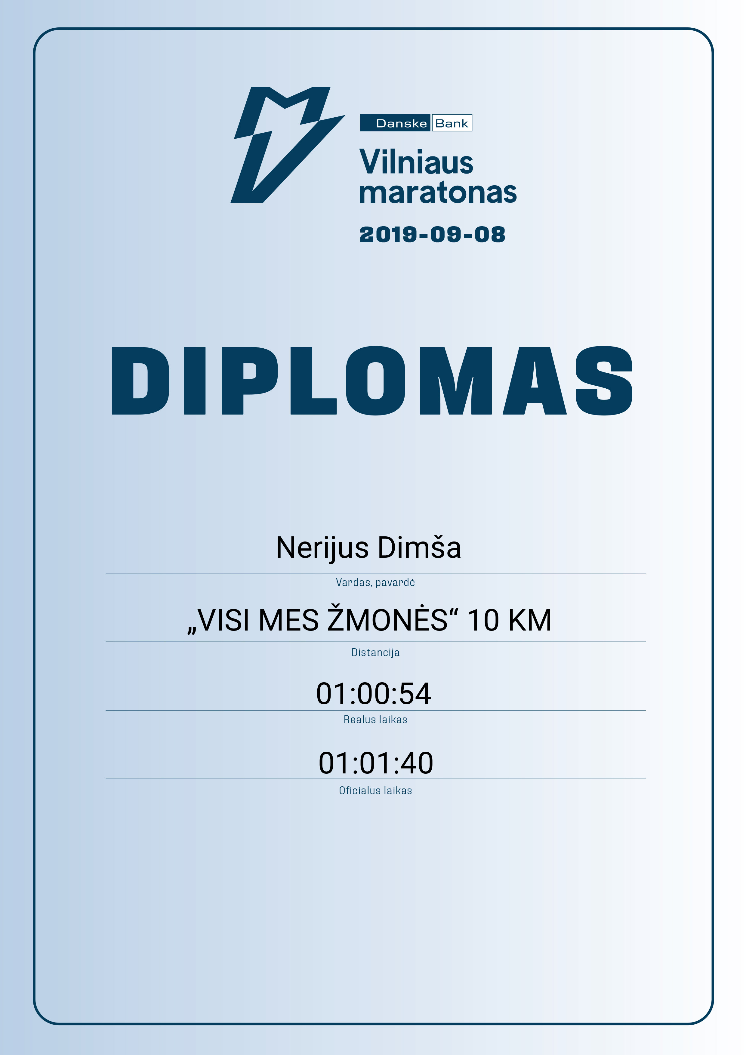 | 1163 | Nerijus Dimša | 22350 | Lithuania | „VISI MES ŽMONĖS“ 10 KM | 01:01:40 | Diplomas |