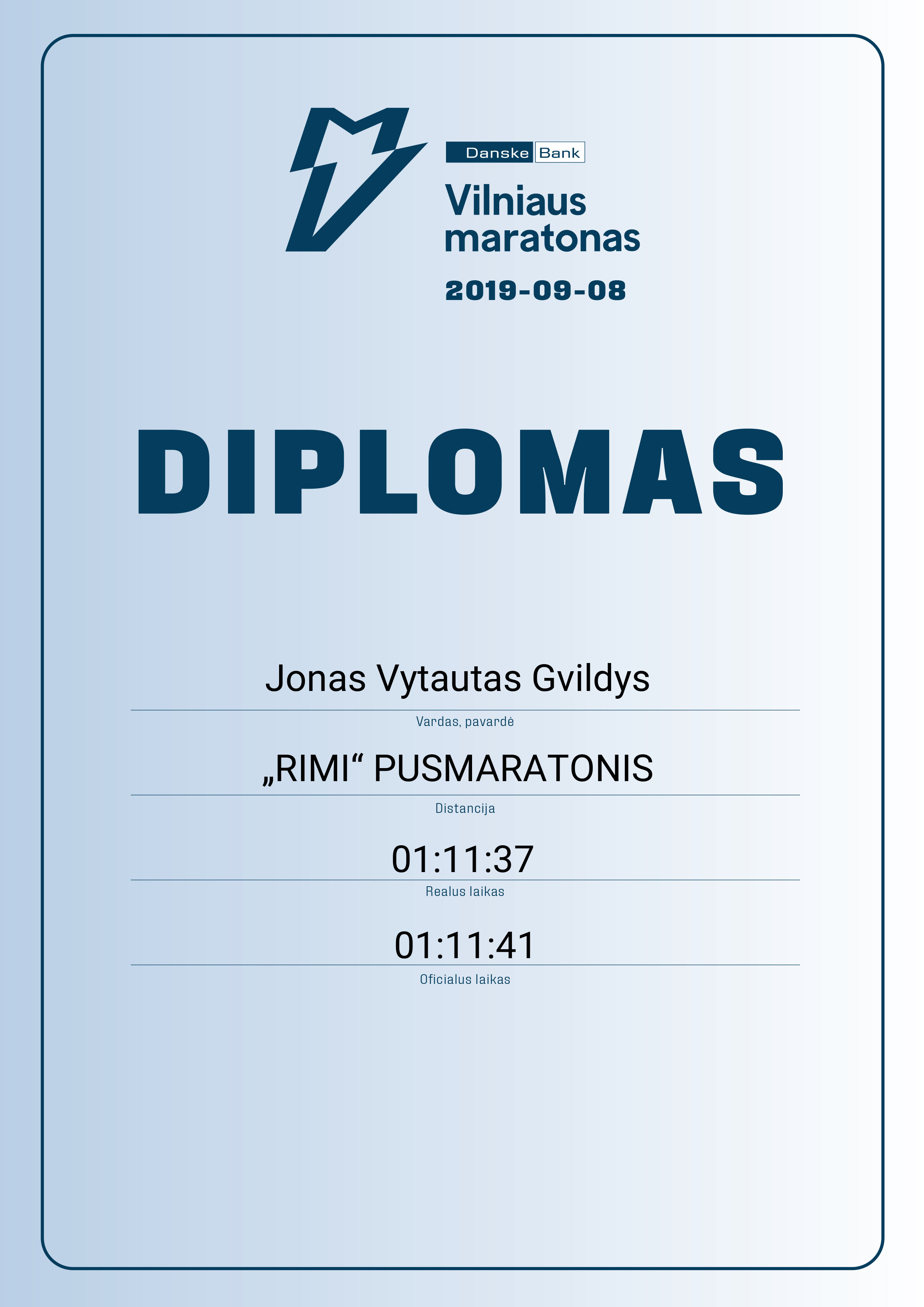 12 Jonas Vytautas Gvildys Lietuvos kariuomenė 11940 Lithuania „RIMI“ PUSMARATONIS 01:11:41 01:11:37 00:34:20 Diplomas